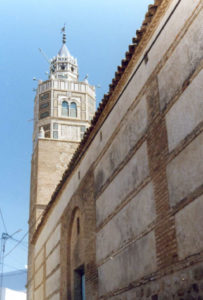 La Grande Mosquée, de rite hanéfite, nous a-t-on dit, aurait été fondée dans la première moitié du XVIIème siècle par Mohamed Tagharinou venu, lors de la deuxième grande immigration, des frontières nord de l’Espagne musulmane : l’Aragon. Son minaret, en saillie à l’angle nord, se compose de trois « corps » superposés. Il fait irrésistiblement penser à la « Giralda » de Séville. Son architecture dans le style de Tolède est originale.