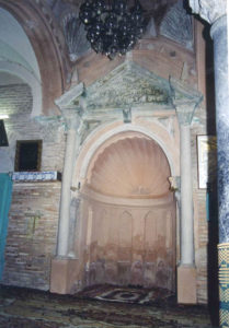 Le décor du mihrab est très curieux. Tous ses éléments décoratifs sont empruntés à la Renaissance italo-espagnole.