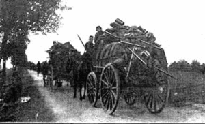 Il leur faut marcher sans relâche, sur des pistes à peine tracées, suivre les troupes, combattantes, dans des villages dévastés, pratiquement sans abris et sans repos. A l’arrivée, il faut d’abord panser les bêtes, les abreuver et les nourrir. Puis, réparer les harnais et enfin penser à soi-même. Le ravitaillement ne peut pas être interrompu malgré les intempéries, l’état des routes, l’usure du matériel composé de chariots comme on en voit dans les films traitant de la conquête de l’Ouest aux Etats-Unis !, la fatigue et la misère physique des hommes et des bêtes sont énormes. Les conducteurs doivent redresser un chargement versé, encourager leur attelage à bout de forces. Ils relèvent les animaux tombés. Ils réparent et repartent. Ecrasés par la chaleur, arrêtés par la neige ou le verglas. Ils sont isolés pendant plusieurs jours. Ils se rationnent et respectent les vivres pour les combattants. Ils continuent à marcher à côté des mulets, lavant de quelques gouttes d’eau les yeux et les naseaux des bêtes épuisées. En Europe centrale, ils arriveront à parcourir 700 kilomètres en 33 jours. Ils ne tombent pas en pleine bataille, avec des blessures « glorieuses » mais, dans un coin d’hôpital, ils rendent leur dernier soupir, épuisés par la fatigue et le surmenage !