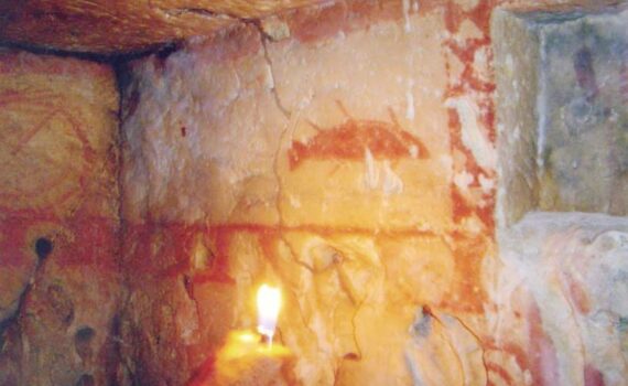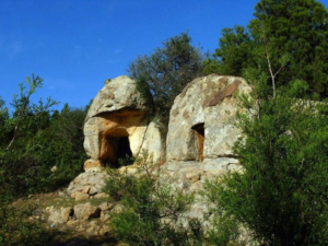 De plus, certaines parois présentent des graffitis. À proximité de cette nécropole, on trouve également un dolmen.