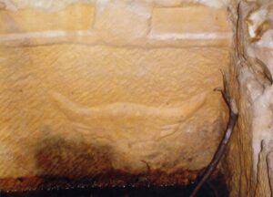 Le Hanout aux taureaux présente une tête de taureau sculptée sur la paroi de la fosse, tandis qu’au-dessus de l’entrée, une tête cornue encadre une niche.